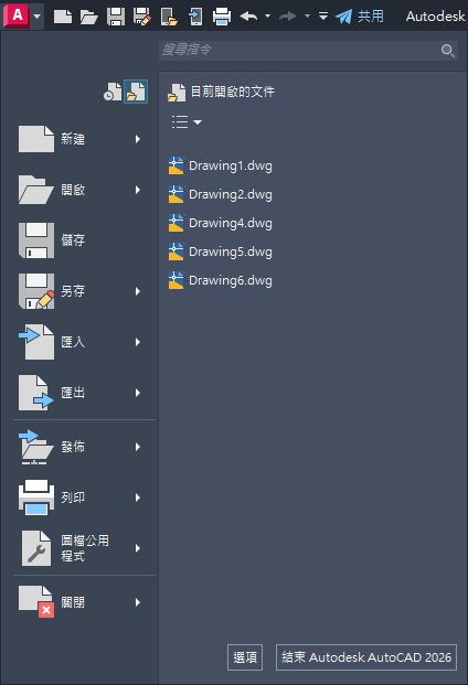 開啟的文件顯示在「目前開啟的文件」清單中,其中最近開啟的檔案會顯示在最上方。選取一個文件的名稱,以使其處於作用中的狀態。