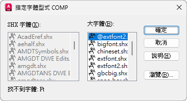 當您打開缺少字體檔的圖面時,將顯示此對話方塊,允許您為型式選擇替換的字體檔。