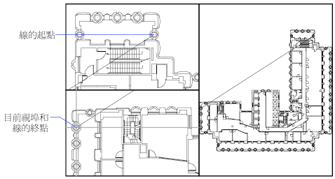 在較大的圖面中,您可以使用這種方式繪製一條線,它從一角點的細部畫到一個遠距離角點的細部。