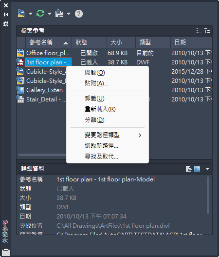 關於編輯帶巢狀、OLE 或屬性的參考圖面與圖塊