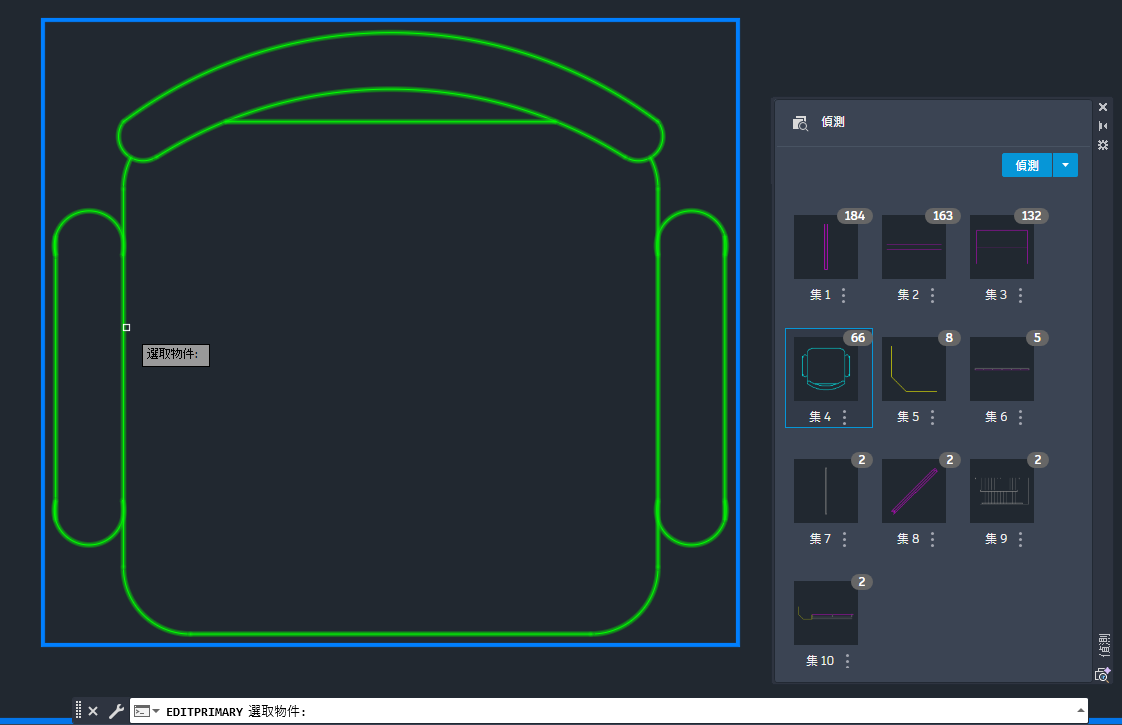 執行 BDETECT 後,「偵測」選項板會在新的縮圖視圖中顯示所有偵測到的集。