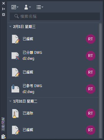 可讓您瞭解您或其他人過去針對您的圖面所執行的動作。