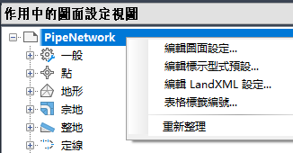 在 Autodesk Civil 3D 中,可以透過「工具區」的「設定」頁籤來維護表格標籤控制。在「主要視圖」中,於圖面名稱上按一下右鍵,然後選取「表格標籤編號」。