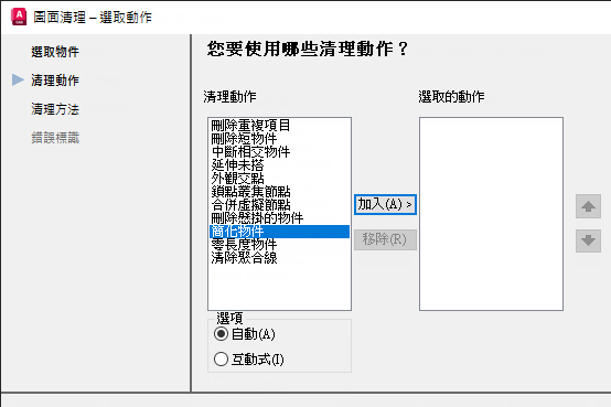 Autodesk Civil 3D 還隨附了一個專為 AutoCAD Map 3D 開發的強大公用程式。它可讓您刪除重複的物件、對聚合線進行刪點以及執行其他多個清理動作。可以設定幾個參數來控制每個動作。透過以下兩種方式之一存取清理工具: