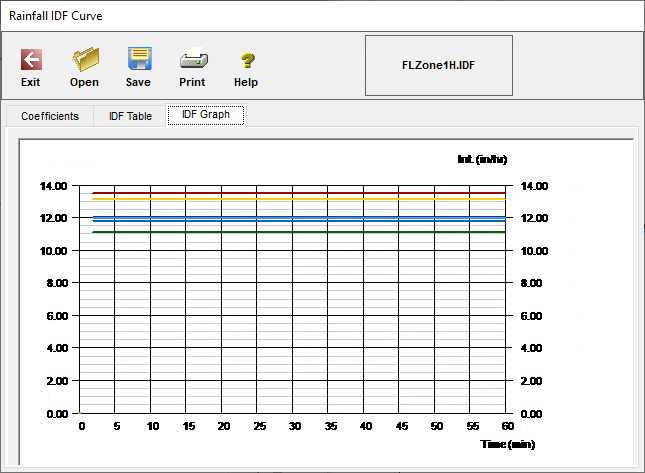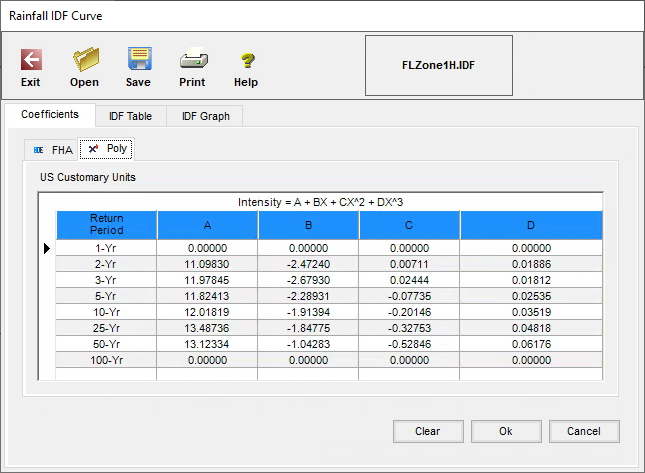 方程式的係數為 B、D 和 E,您應該將 D 和 E 的值設為零 (0)。B 值為強度,以英吋/小時為單位。按一下對話方塊底部的「確定」以儲存變更。