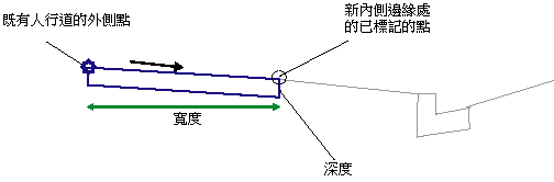 | 寬度 | 人行道的寬度 (從人行道邊緣高點向內測量) |