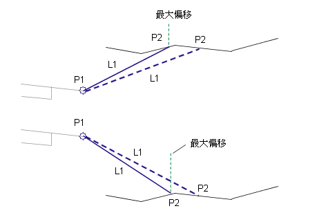 可用於取代固定的最大偏移值,並將最大偏移關聯到偏移定線。以下物件類型可以用作指定偏移的目標:定線、聚合線、地勢線或測量圖形。 |