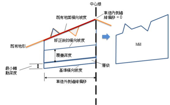 | 既有車道外側邊緣 | 這是計算既有地面坡度的起點。 | 數字 | 0.000m |
