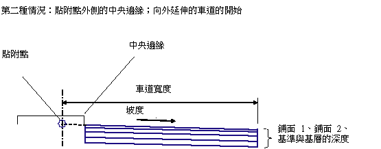 無中央時的車道寬度,即從貼附點到外側車道邊緣的寬度。 |