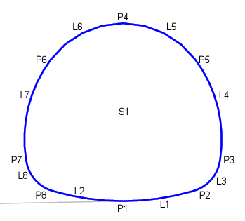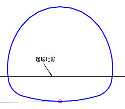 在貼附點設定初始點。如果邊坡地形低於鋼板底部或高於上昇標註,則建置整片鋼板。如果邊坡地形位於鋼板內部,則建構部份鋼板。將每個板角分割為 10 個部份,構成 10% 的板角。然後再測試橫斷面,直到橫斷面內部產生邊坡且不再執行橫斷面處理作業為止。