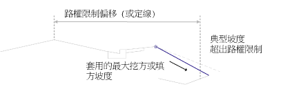 典型邊坡坡度允許集水點位於偏移限制範圍 (由數值或定線位置指定) 以內。