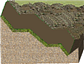 剝離表土:剝離表土至指定深度,該指定深度從貼附點至指定剝離寬度。 預設工具選項板:邊坡次組合 |