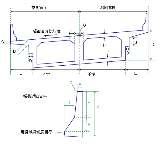 包含或省略橋面每一側的擋牆。 |