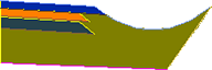 路肩多圖層:類似於帶有延伸基層的路肩 (具有其他基準路線和基層路線)。頂部兩條鋪面路線具有至邊坡坡度的可變延伸。 預設工具選項板:路肩次組合 |