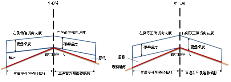 修正橫向坡度將會是既有地形橫向坡度。