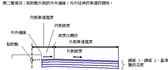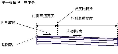 無中央時的內側車道寬度,即從貼附點到坡度比轉折點之間的寬度。 |