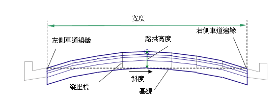 從基線中心點到道路路拱的高度 |