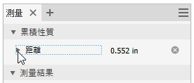 若要從清單中刪除個別值:將游標懸停在累積值上,然後按一下刪除圖示。累積值會相應地進行調整。若要刪除一組值,請將游標懸停在「距離」、「角度」或「面積」上,以從累積群組中刪除所有值。