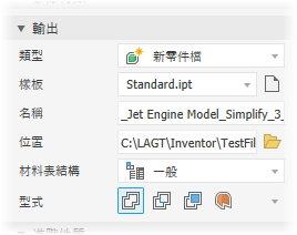 「替代件」會輸出要填入替代件模型狀態的簡化 Inventor 零件。