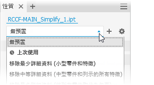 「簡化」指令使用作用中的組合,以替代件模型狀態或導出零件建立實體或複合曲面模型。