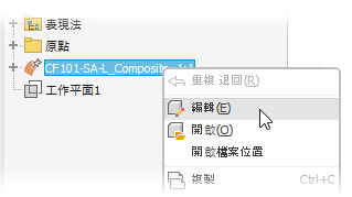 在瀏覽器中,於替代件模型上按一下右鍵,然後按一下「編輯」。