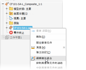 在瀏覽器中,於簡化組合上按一下右鍵,然後選取「編輯簡化組合」。