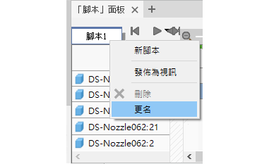 您可以在建立期間或編輯簡報時更名任何腳本。在腳本標題上按一下右鍵,然後選取「更名」。