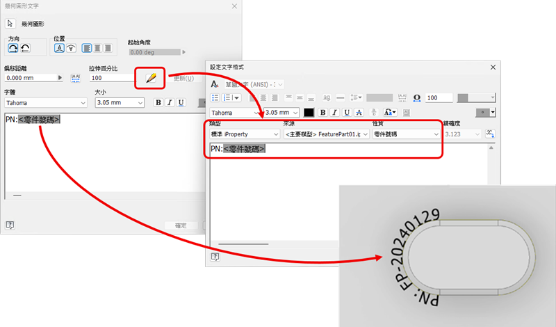 查看此版本的零件塑型幾何圖形文字增強功能。