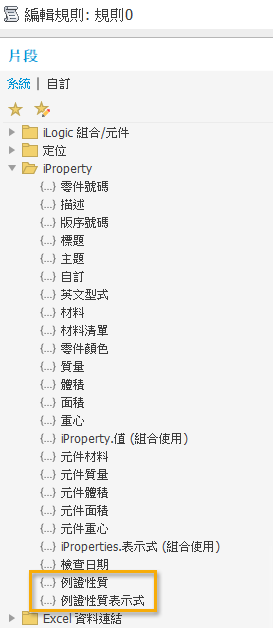 若要取得有關 iLogic 中片段的資訊,請參閱〈關於 iLogic 中的程式碼片段〉。