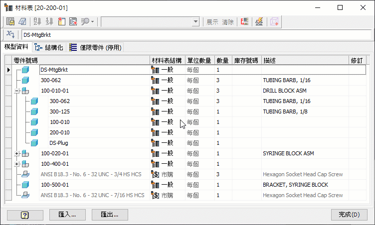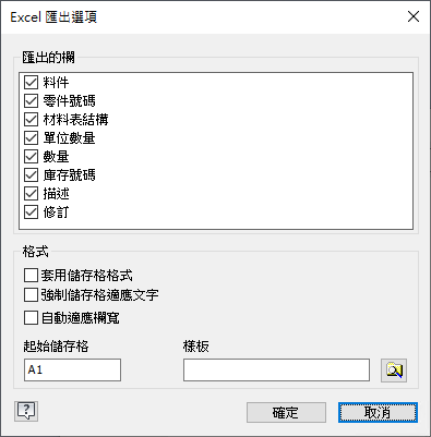 若要取得更多資訊,請參閱〈將材料表匯出至工作表或文字檔〉。