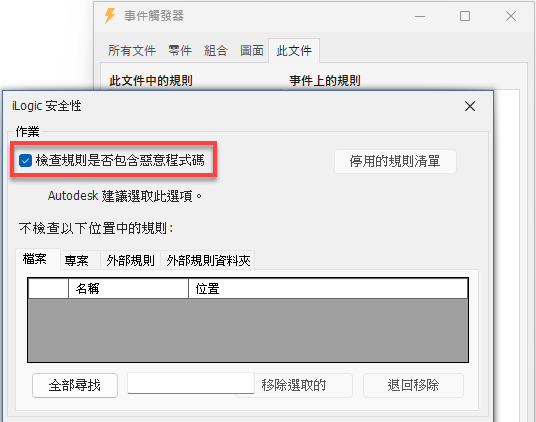 若要取得更多資訊,請參閱〈使用 iLogic 中的事件觸發器〉。