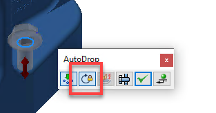 使用 Autodrop 從資源中心插入結件 (例如螺栓、螺帽、墊圈) 時,您現在可以使用新的「鎖住旋轉」選項鎖住結件位置。