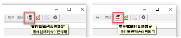 現在,「零件號碼列合併設定」的圖示會因啟用或停用而有所不同,因此您可以直接在「材料表」對話方塊中看出狀態。