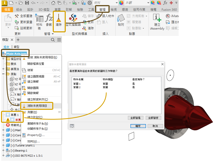 使用新的「清除未使用項目」指令,選擇性地移除未使用的草圖。