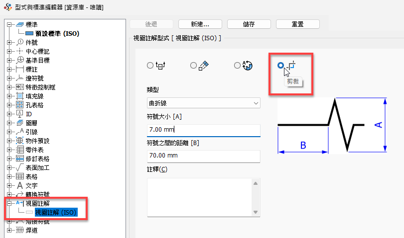若要取得更多資訊,請參閱〈型式與標準編輯器 - 標註參考〉。