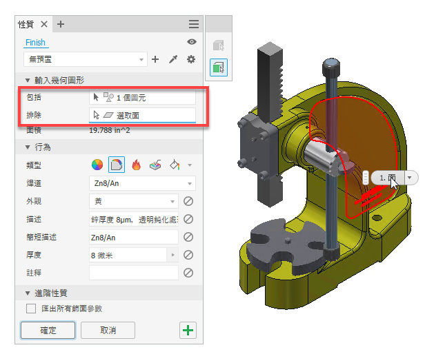 若要取得更多資訊,請參閱〈將飾面指定給元件〉。