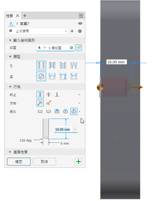 在「孔註記」對話方塊中加入「鑽尖類型」按鈕,用於將