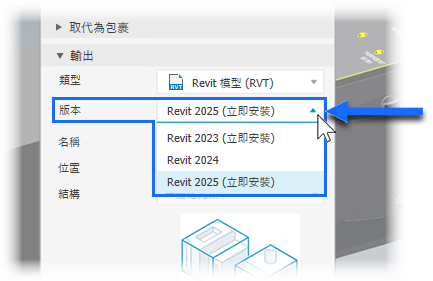 輸出至選取的 Revit 版本