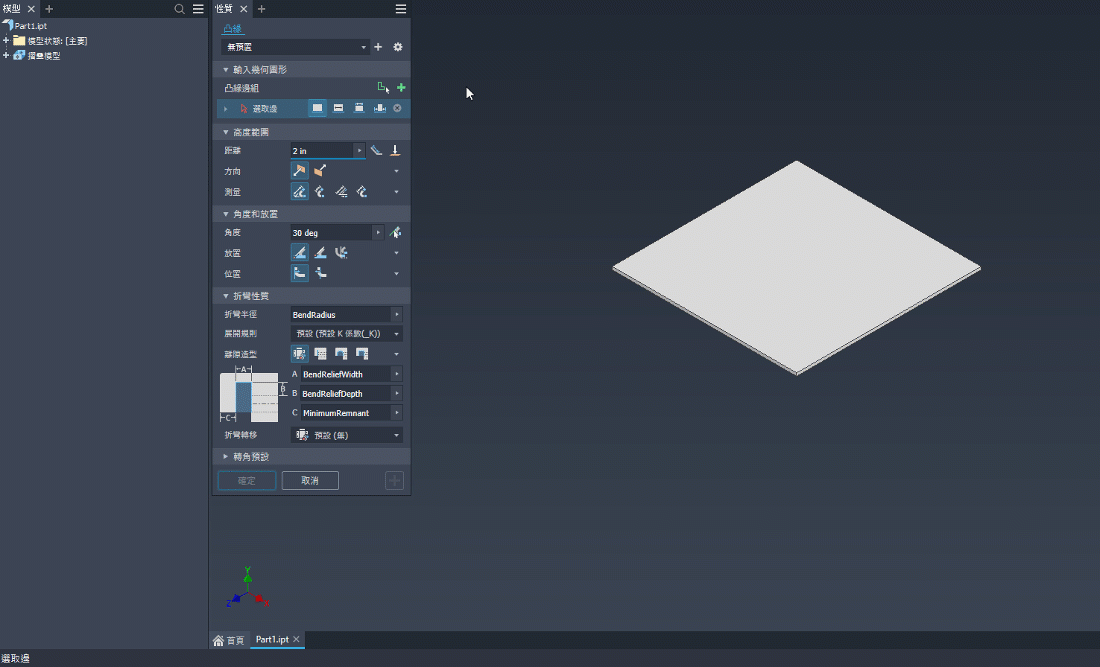 若要取得更多資訊,請參閱〈在板金中使用凸緣〉。