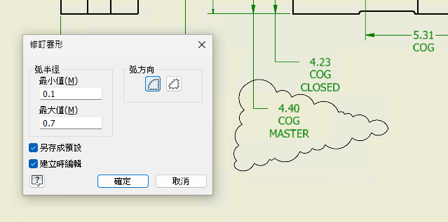 調整修訂雲形弧比例的功能
