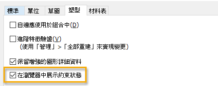 「塑型」頁籤中,還提供新設定「在瀏覽器中展示約束狀態」。依預設,此設定處於停用狀態。