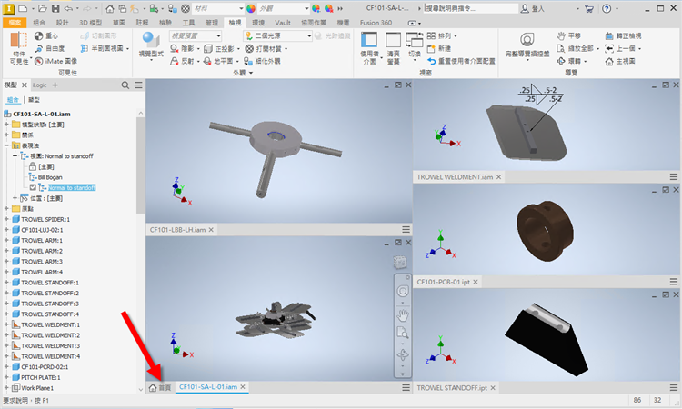 使用視窗排列工具時,「常用」頁籤不再參與。排列視窗動作僅涉及您開啟的模型和導引式自學課程。