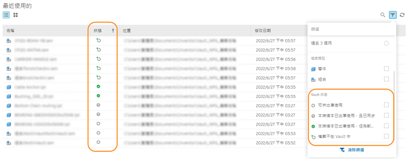 如果您使用 Vault,也可以使用 Vault 狀態進行篩選。