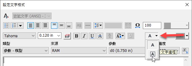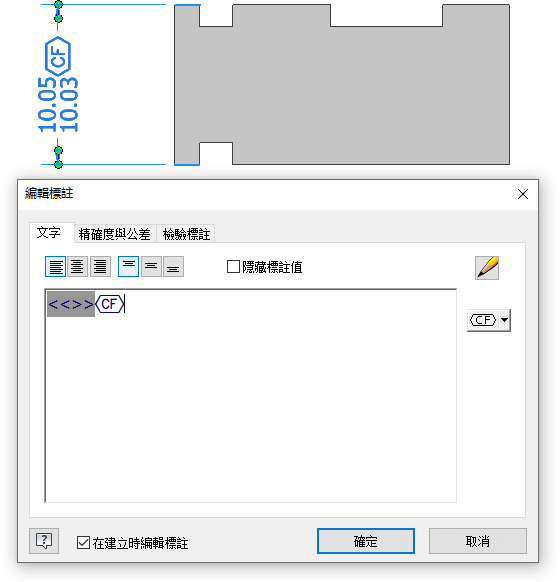 現在,3DA「編輯標註」和「設定文字格式」對話方塊中可使用 CF 符號。
