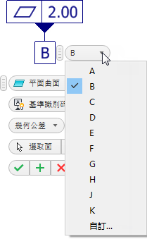 啟動「公差特徵」指令,選取特徵,然後選擇「確定」。放置註解後,按下拉式清單以檢視選項。