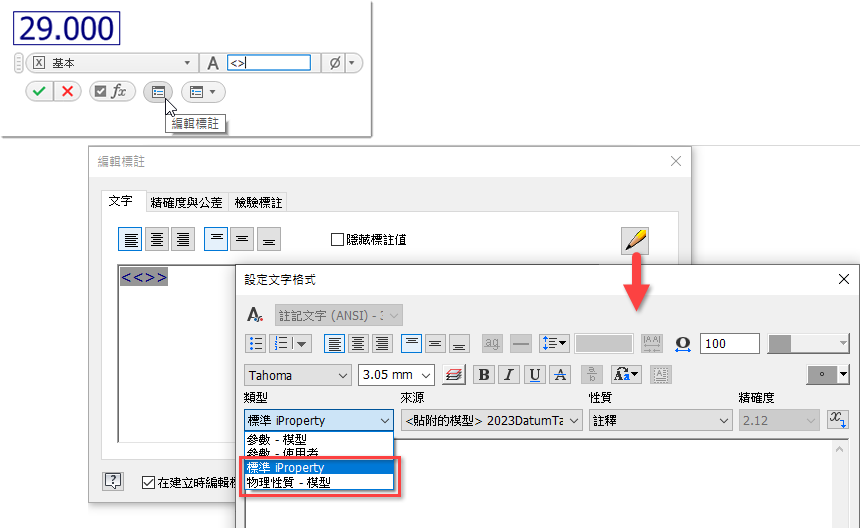 「3D 註解」現在可以存取「參數」以進行文字輸入。