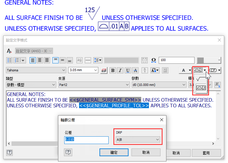 若要取得更多資訊,請參閱〈使用公差特徵註解和「公差顧問」〉。