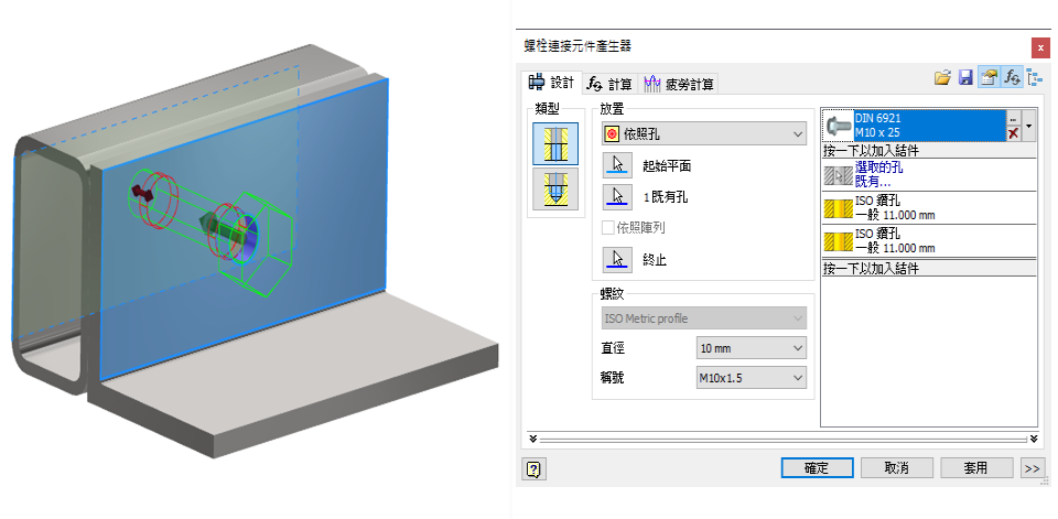 「螺栓連接產生器」現在可讓您選取特定的螺栓螺紋稱號。