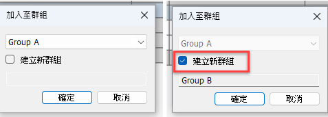 若要建立新群組,請勾選「建立新群組」勾選方塊。若要更名或刪除群組 (及其參數),請在群組的右鍵功能表中選取對應的項目。