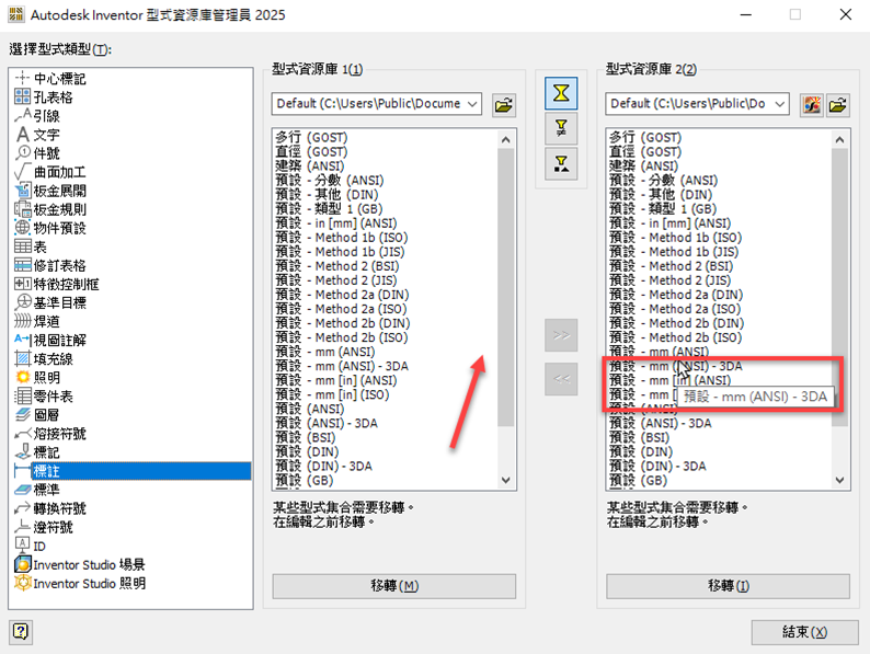 在「型式資源庫管理員」中,名稱較長的型式現在具有水平捲動軸,以便於查看。此外,為所有型式加入了工具提示。